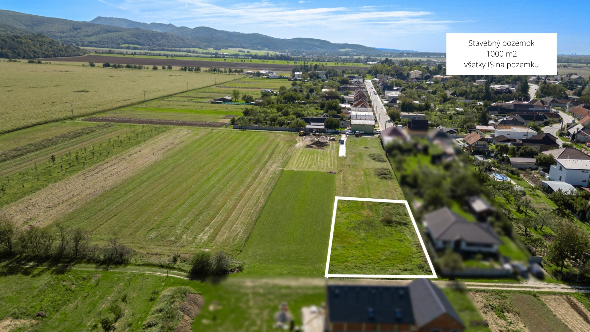 Výhody: slnečný, rovinatý, pekný výhľad, tiché prostredie, škola, škôlka.